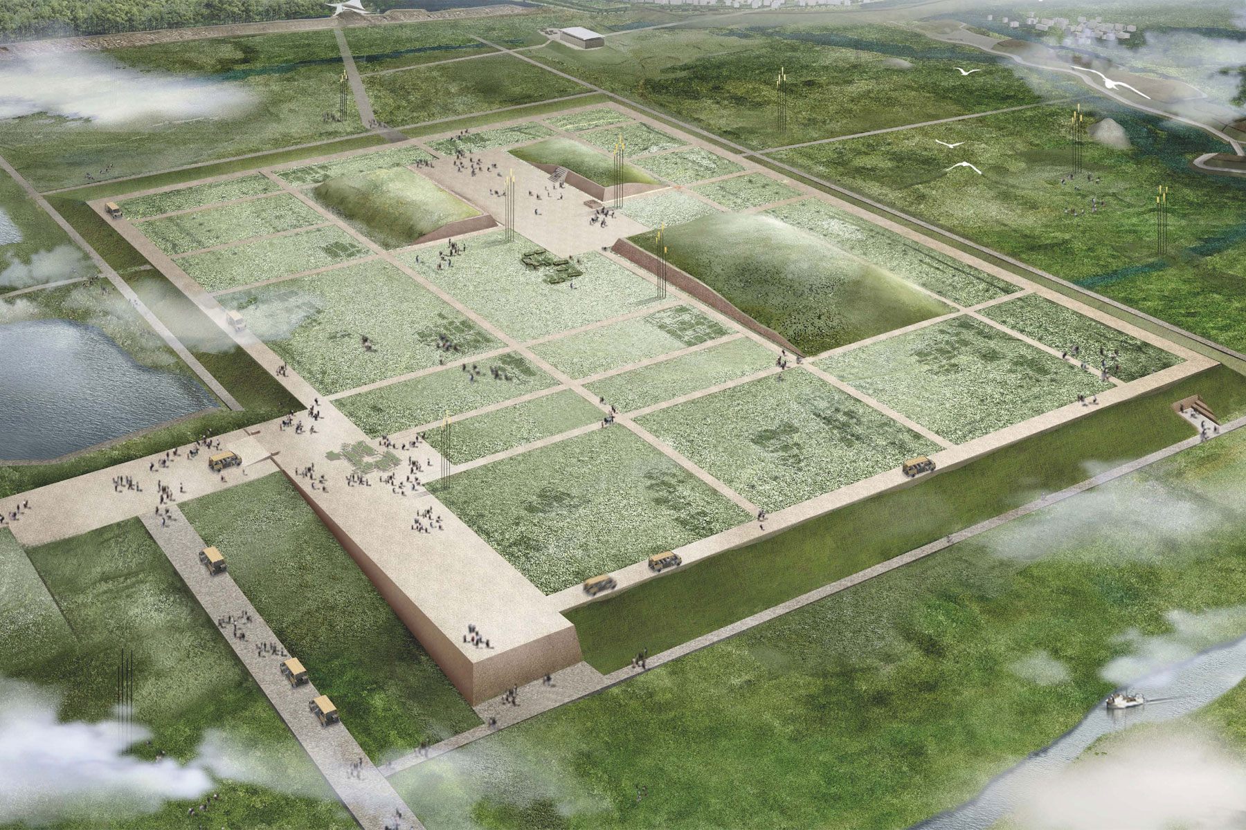 Die historischen Stadtstrukturen werden während des Baus erforscht, dokumentiert, gesichert und größtenteils mit Mitteln der Landschaftsarchitektur abgebildet.