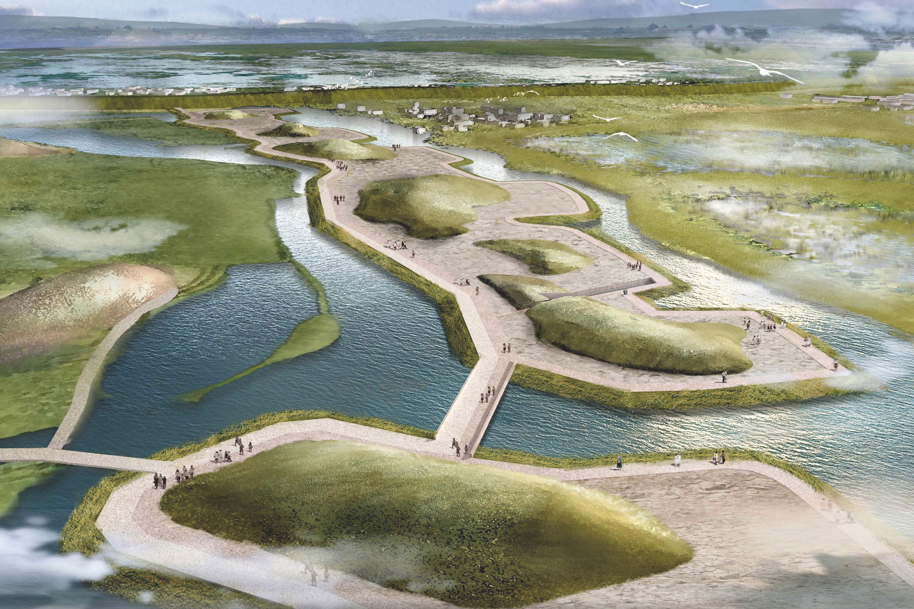 Durch den Rückbau der heutigen Bebauung innerhalb und auf der historischen Stadtmauer wird die historische Situation wieder sichtbar gemacht. Die historische Stadt war umgeben von Wetlands, Sümpfen, Wasserläufen, Flüssen und Seen. Die Menschen lebten vom und mit Wasser, errichteten ihre Häuse im Wasser, bauten Kanäle, Wassertore, Häfen, betrieben Schifffahrt und waren Bootsbauer. Deshalb hat Linagzhu besondere Bedeutung als Zeuge für die sogenannte „Wasserkultur“.