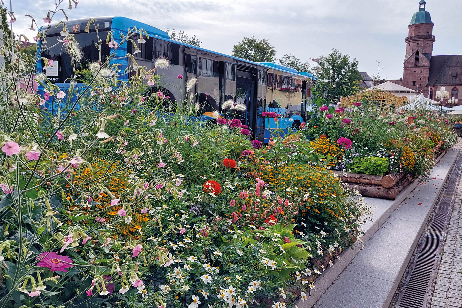 Ein Großteil der Wechselflorpflanzungen sind im Forbachtal vorgesehen. Die Pflanzenverwendung weist daher auch hier einen naturnahen Charkter auf. Durch eine filigrane mosaikartige Grundstruktur der Pflanzungen, die verschiedene Blütenformen und unzähligen kleine Blüten miteinander verwebt, entsteht eine Millesfleurs-Pflanzung, die den wiesenartigen Charakter der Talwiesen nachahmt. Die Wechselflorpflanzungen am Shuttle-Haltepunkt und mit dem Blütenwasserfall wird das Forbachtal symbolisch auf den Freudenstädter Marktplatz und damit die Gartenschau in den Stadtraum hochgeholt.