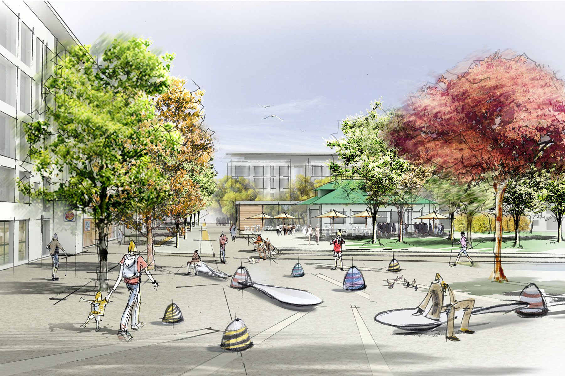 Ziel der Freianlagenplanung ist, die Unterführung als durchgängige Hauptverbindung zwischen der Unterstadt Böblingen und Flugfeld gestalterisch in einen einheitlichen Formen- und Farbenkanon, als Bindeglied zwischen dem Bahnhof Böblingen und dem Flugfeld zu bringen.