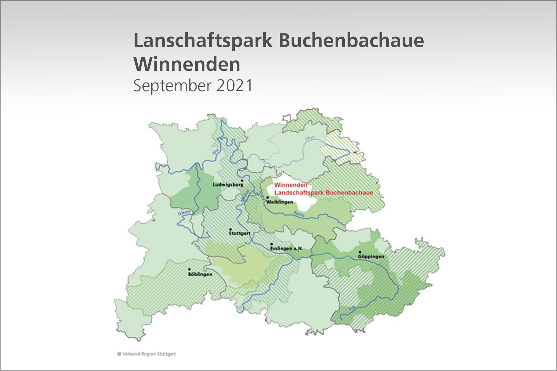 Die Stadt Winnenden ist umgeben von den Landschaftsparks Neckar, Murr-/ Bottwartal, Rems und Limes. Winnenden will mit seiner Bewerbung für einen `Landschaftspark Buchenbachaue´, als bisher fehlender Baustein innerhalb des Landschaftsparkkonzeptes für die Metropolregion Stuttgart, einen wichtigen Beitrag leisten, um diese Lücke zu schließen. Gleichzeitig soll der `Landschaftspark Buchenbachaue´ zum Impulsgeber einer zukunftsfähigen Stadtentwicklung Winnendens werden.
