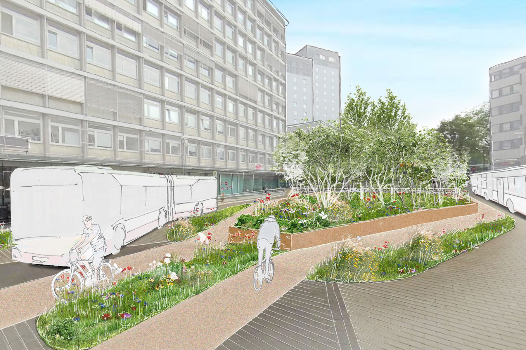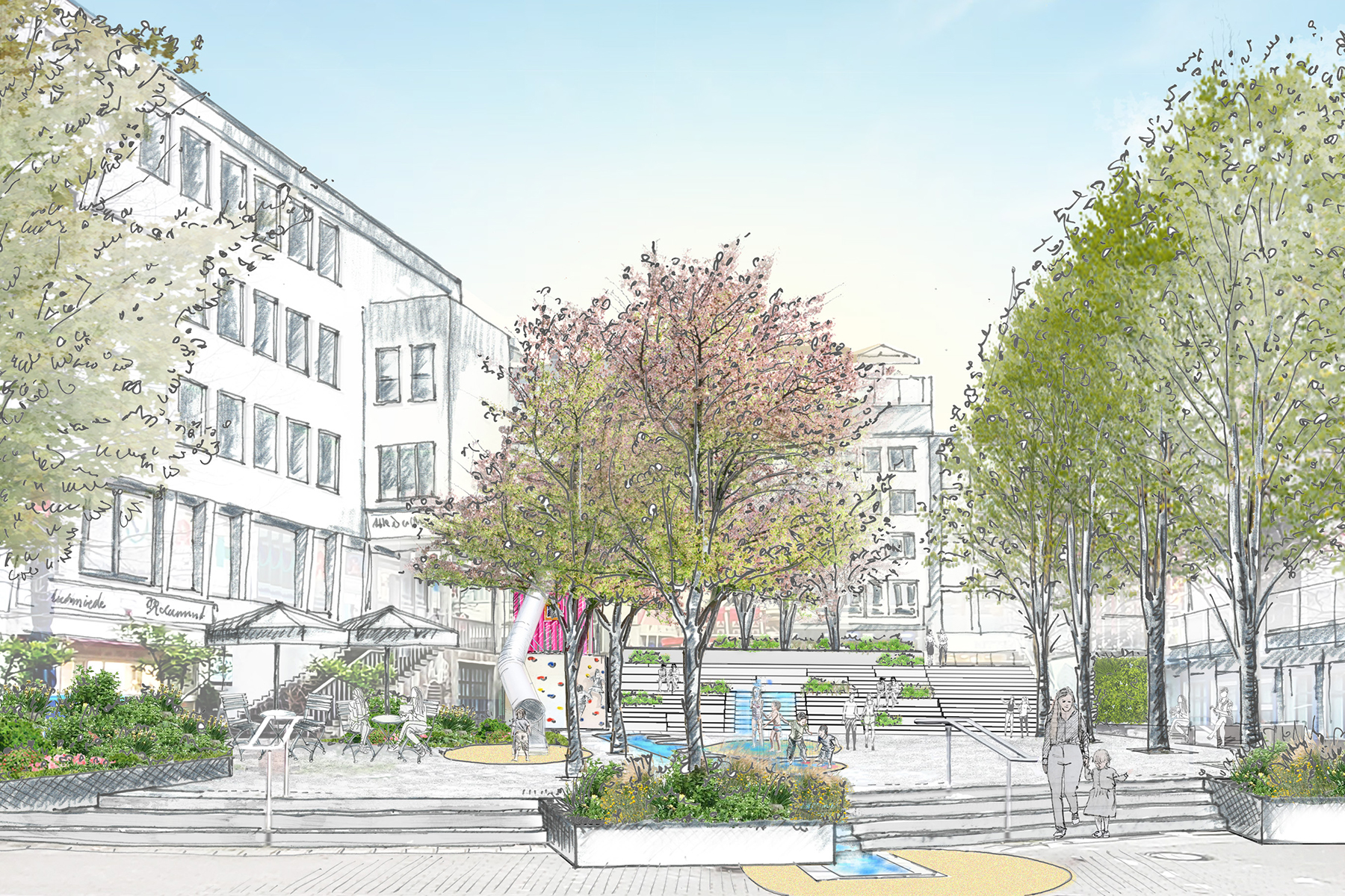 Das erklärte Ziel des Freiraumkonzeptes `Upgrade Grün und Spiel´ ist die Aktivierung, Qualifizierung und Schaffung neuer, multicodierter, klimaresilienter Grünräume innerhalb des innerstädtischen Gleisdreiecks. Dabei wird ein allgemeingültiges, übergeordnetes Ziel formuliert, das die vielfältigen Aufgaben der Starkregen- und Gesundheitsvorsorge, Erholungsfunktionen, generationsübergreifende Spiel-, Bewegungs- und Aufenthaltsangebote zusammenführt. Gleichzeitig sollen nichtkommerzielle Stadträume für Kommunikation und Interaktion entstehen, die die Innenstadt attraktivieren und in denen ein neues soziales Miteinander der Stadtgesellschaft gefördert werden kann.