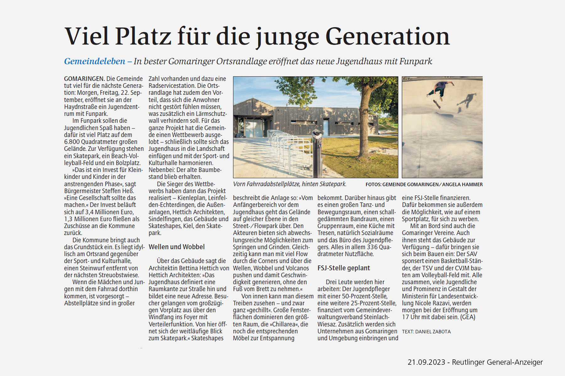 Gomaringen eröffnet sein Jugendzentrum Reutlinger Generalanzeiger 21.09.2023 Gomaringen eröffnet sein Jugendzentrum Weiterlesen … Gomaringen eröffnet sein Jugendzentrum