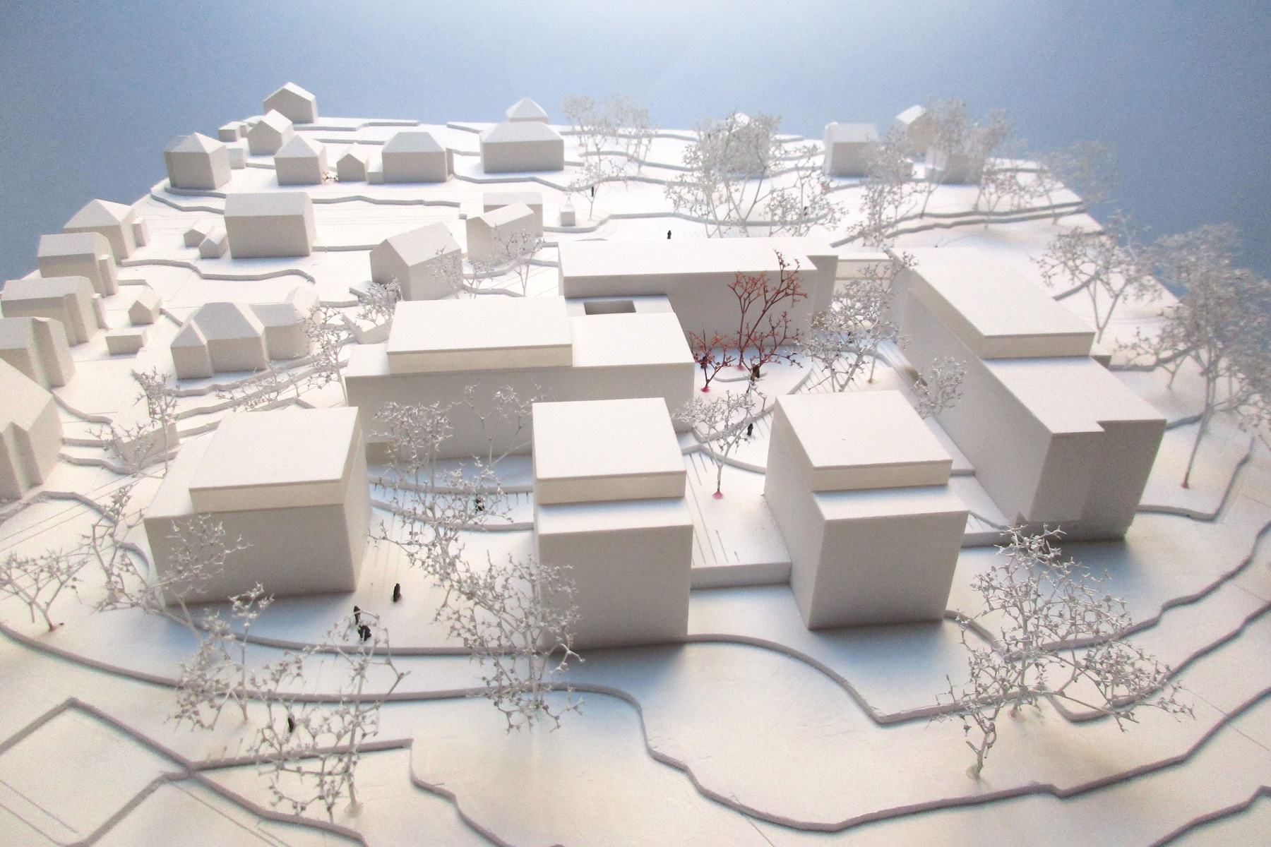 Die Gebäudesituierung orientiert sich nach den Vorgaben der Topografie. Die nach Osten offene Bauweise erlaubt eine gute Durchlüftung in West-Ost-Richtung. Die Gebäudestellung erlaubt aus den Obergeschossen aller Gebäude Blickbeziehungen über Stuttgart-Vaihingen hinaus bis zur markanten Kulisse der Schwäbischen Alb.