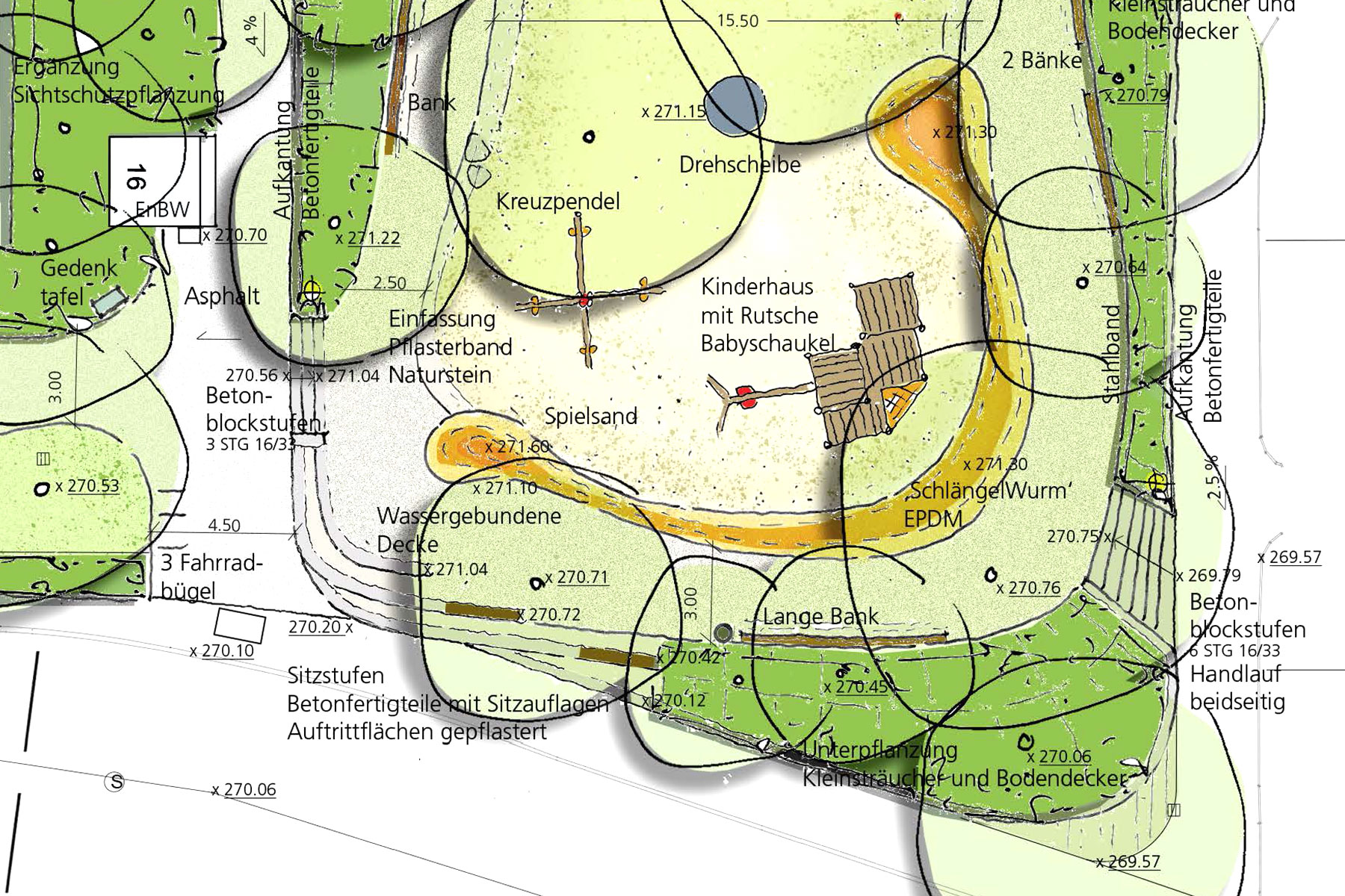 Die Außenanlagen wurden vom Büro Wölffing-Seelig in Stuttgart geplant und ausgeschrieben. Die Bauleitung wurde durch die Kienleplan erbracht.