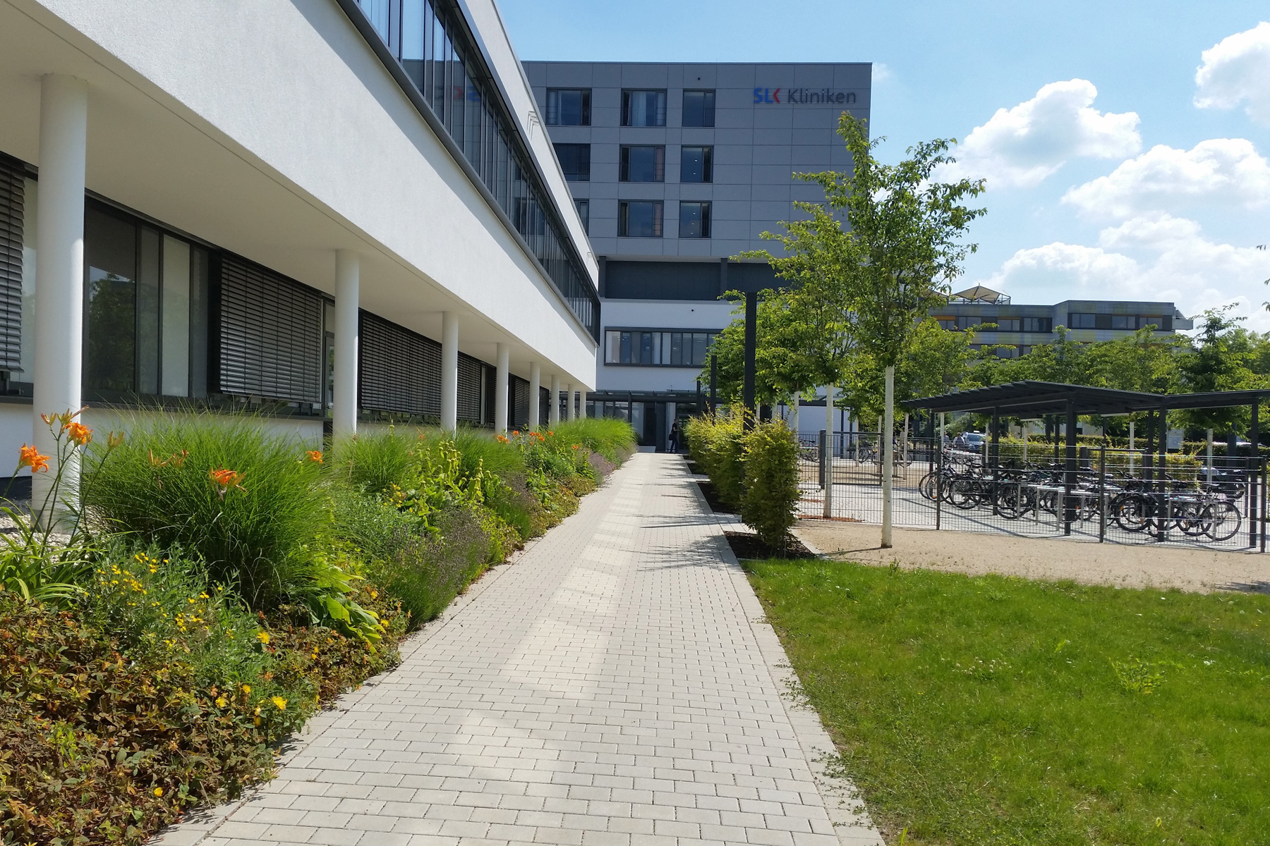 Die Freianlagen des Klinikums sind landschaftlich geprägt, da der Standort im Außenbereich liegt und an drei Seiten an hochwertige Naturräume anschließt.