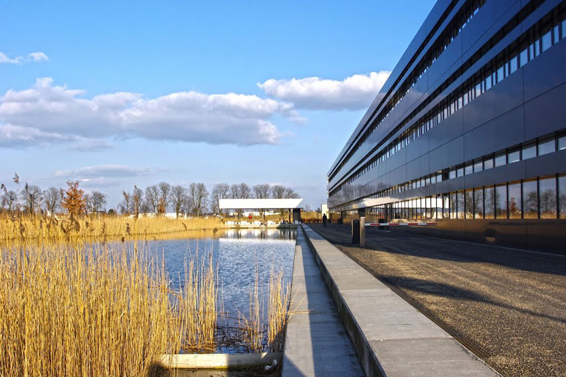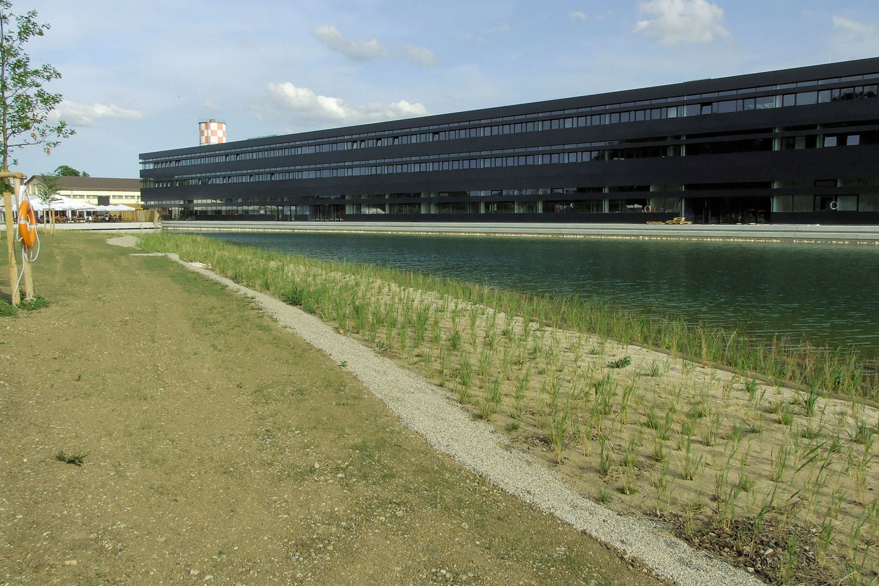 Nördlich des Gebäudes liegt der neu entstandene Wiley-See, mit einer ca. 4.500 m² großen Wasserfläche. Er dient der Regenwasserretention. Anfallende Niederschlagsmengen aller befestigten Flächen werden in den See eingeleitet. Zusätzlich zur Brauch- und Löschwasserentnahme stellt der See ein wichtiges Gestaltungselement dar, das dem Ort eine unverwechselbare Identität schafft.